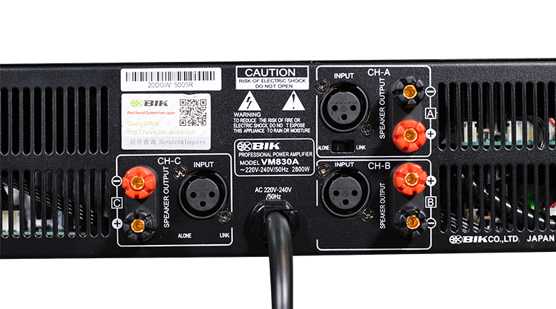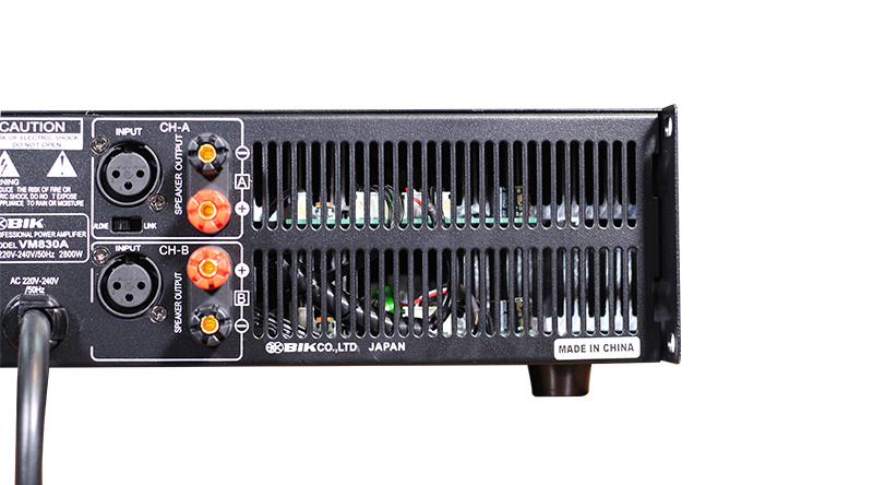 Cục đẩy công suất BIK VM 830A trang bị mạch khuếch đại Class H cho khả năng hoạt động với cường độ cao, thời gian bền bỉ mà vẫn đảm bảo chất lượng âm thanh tốt nhất.