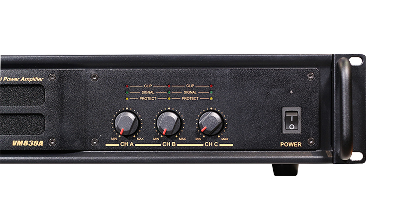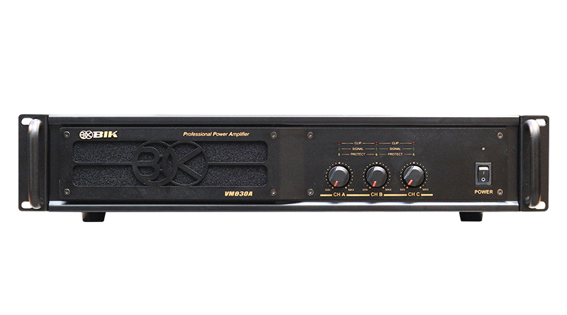 Cục đẩy công suất BIK VM 830A được thiết kế 3 kênh với công suất mạnh mẽ 800W x 2 kênh (A,B), 1300W x1 kênh (C) tại 8Ω stereo cho khả năng tương thích với nhiều cặp loa karaoke có bass lớn, khả năng khuếch đại âm thanh tốt với nhiều thể loại âm thanh khác nhau.