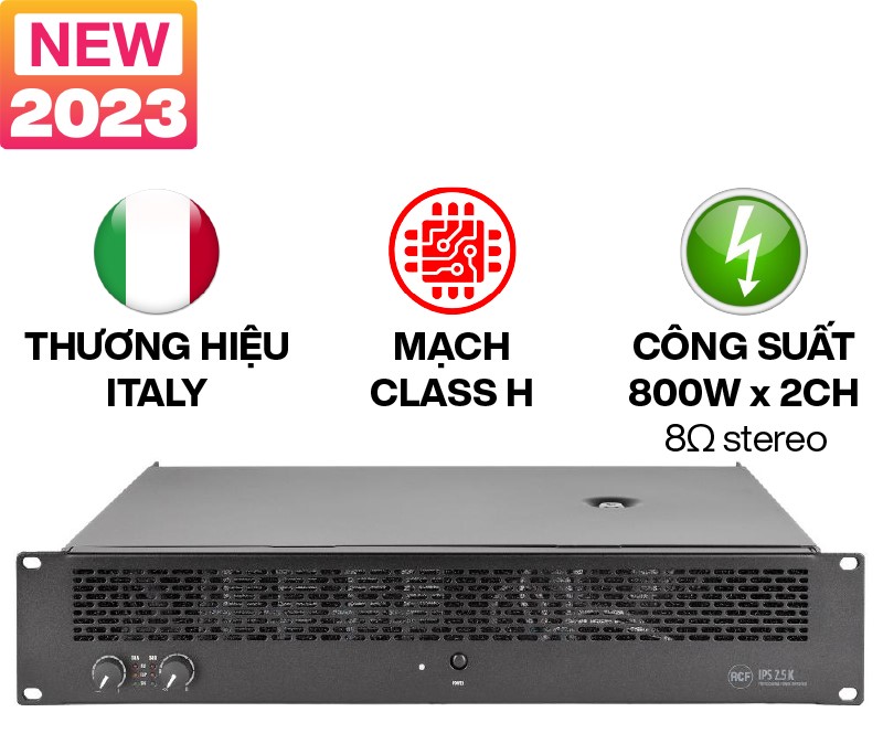 RCF IPS 2.5K là một sản phẩm cục đẩy công suất hai kênh được thiết kế để cung cấp mức công suất đầy mạnh mẽ. Nó được phân phối bởi RCF - một trong những nhà sản xuất âm thanh hàng đầu thế giới. Sản phẩm này có thể được sử dụng cho nhiều hoạt động âm nhạc, bao gồm hát karaoke, nghe nhạc và hội trường.