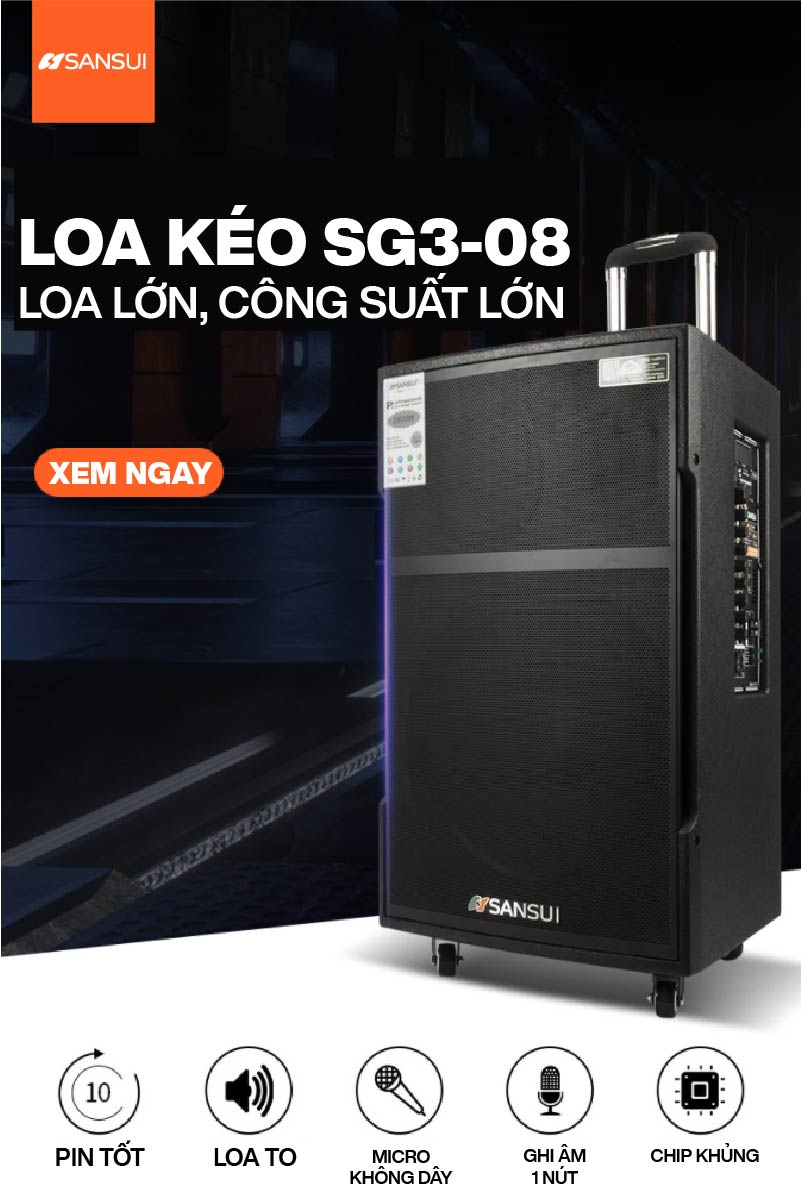 Loa kéo Sansui SG3-08 được thương hiệu Sansui cho ra mắt thị trường và ngay lập tức thu hút được sự chú ý lớn của người dùng bởi khả năng sử dụng tiện lợi, chất lượng âm thanh mạnh mẽ, cạnh tranh trực tiếp với các đối thủ khác thuộc phân khúc tầm trung trên thị trường.