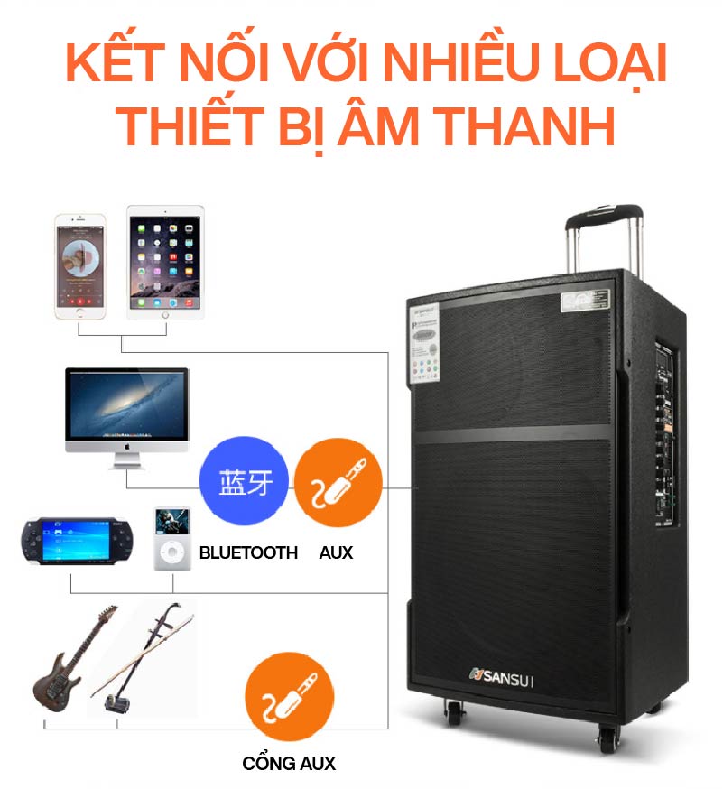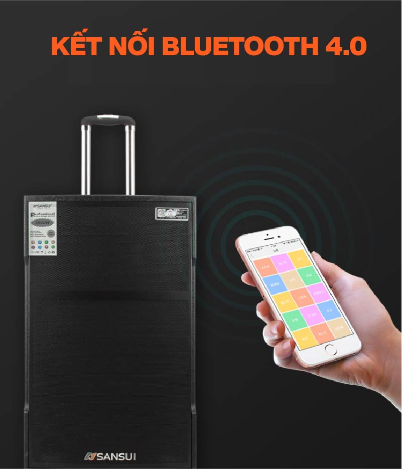 - Loa kéo Sansui SG3-08 tích hợp công nghệ kết nối bluetooth không dây hiện đại, kết nối dễ dàng, nhanh chóng, mượt mà mang đến trải nghiệm âm nhạc không dây chất lượng.