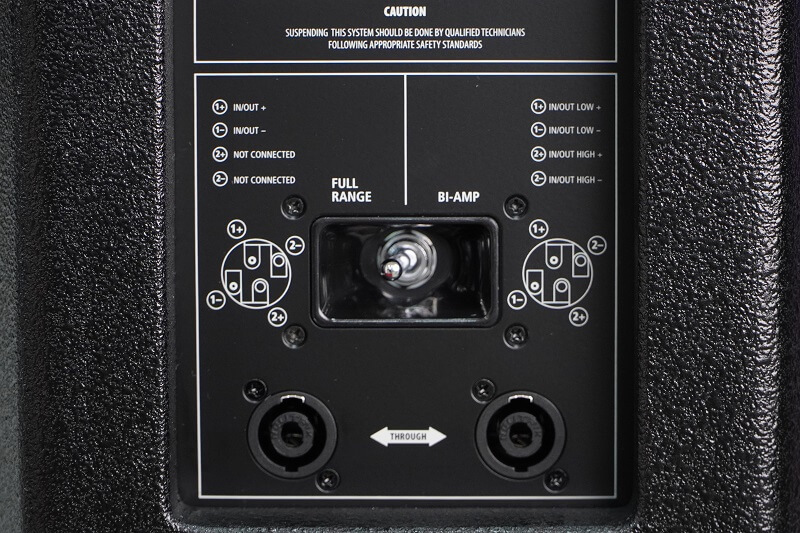 - Hai đầu kết nối NL4 được bố trí khoa học ở đằng sau loa cho phép người dùng kết nối với các thiết bị âm nhạc khác tạo ra dàn karaoke như mong muốn.