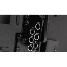 Tấm lưới được làm bằng nhôm đục tùy chỉnh với sợi mở và lớp vải dệt chống thấm nước phía sau. Cabinet được làm bằng lớp ván ép cây bạch dương và được hoàn thiện bằng sơn đen polyurea chống trầy xước.