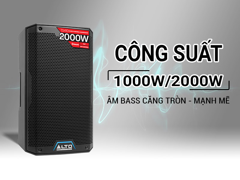 Alto TS410 với công suất RMS 1000W và có thể đạt công suất cao lên đến 2000W, hội tụ đầy đủ mọi dải tần và tái tạo nhịp điệu của âm nhạc nhờ dải tần rộng từ 54 Hz đến 20 kHz.