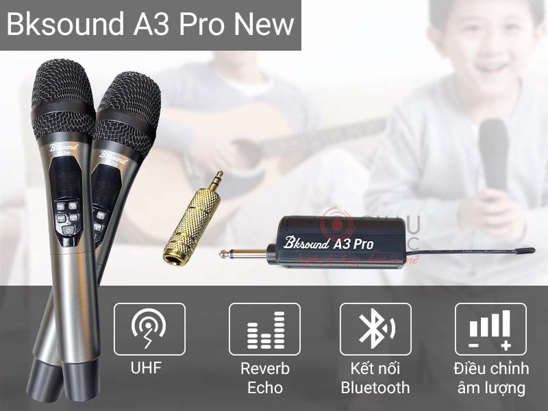 Sau thành công của BKSound A3 Pro, thương hiệu âm thanh BKSound đã cho ra đời Micro không dây BKsound A3 Pro New với những cải tiến mới cho trải nghiệm hát karaoke chất lượng. Kiểu dáng nhỏ gọn, các chi tiết tinh tế, tay cầm bằng kim loại cao cấp, chắc tay được sơn phủ tĩnh điện màu bạc chống trầy xước và rơi vỡ. Đi kèm là bộ thu phát bluetooth nhỏ gọn nhưng bắt sóng vô cùng ổn định.