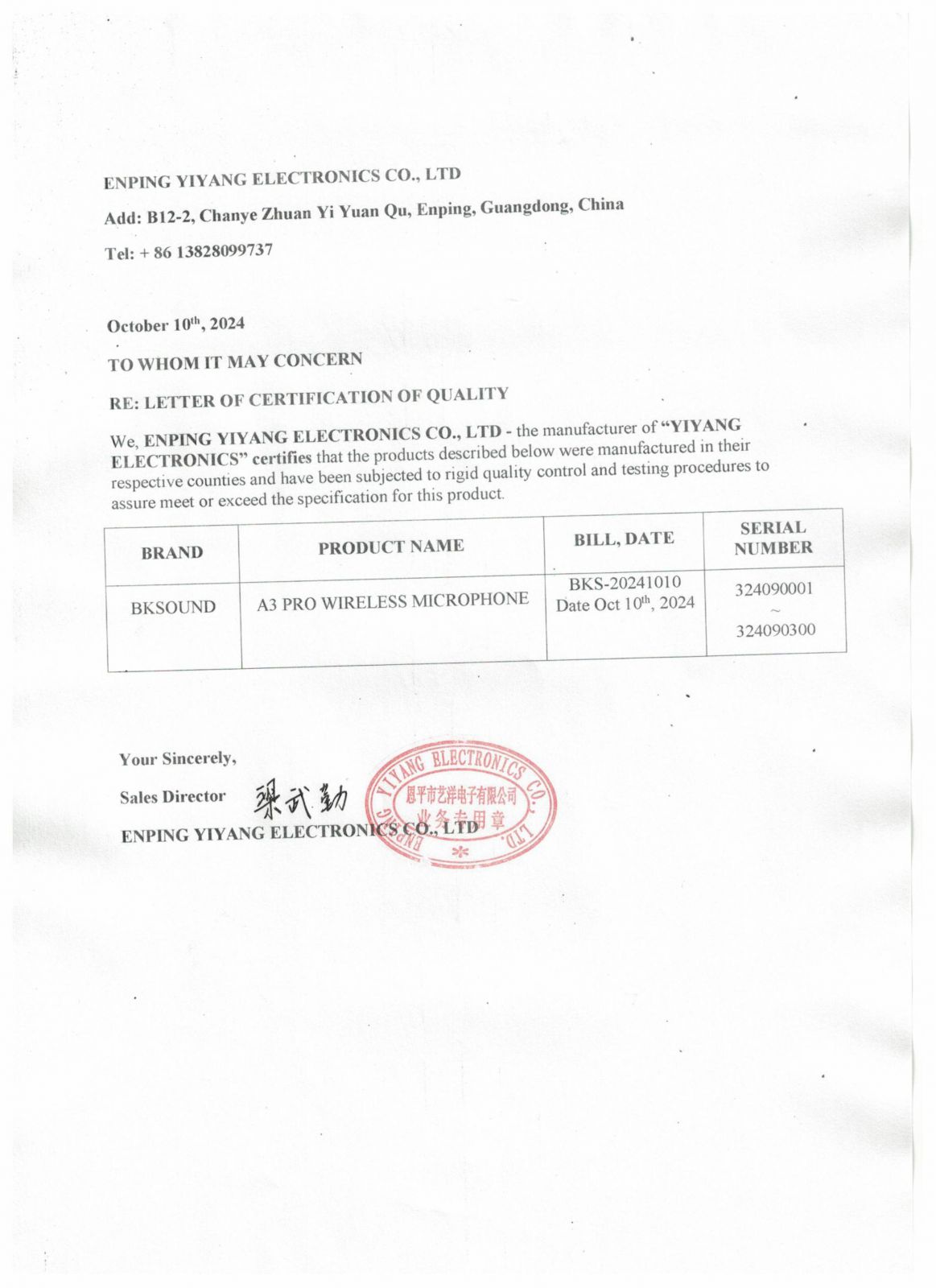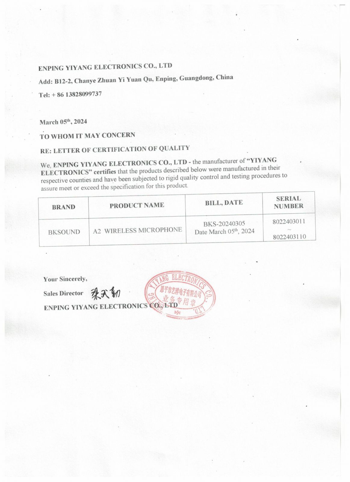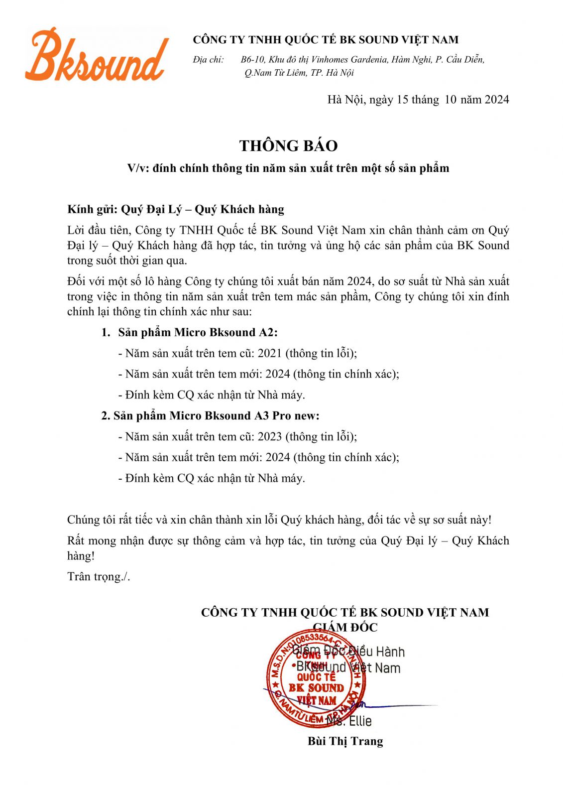 BKSound xin thông báo và đính chính thông tin liên quan đến năm sản xuất trên một số sản phẩm để đảm bảo minh bạch và quyền lợi của quý khách.