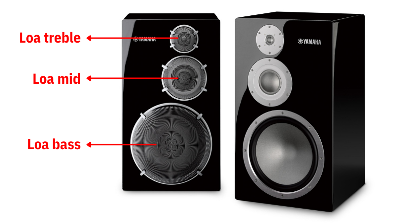 Ở dòng loa thùng sẽ thường được sử dụng phổ biến 4 củ loa là: Tweeter (tái tạo dải cao), Woofer (tái tạo dải thấp), Midrange (tái tạo dải trung) và Sub-woofer (tái tạo dải siêu thấp).